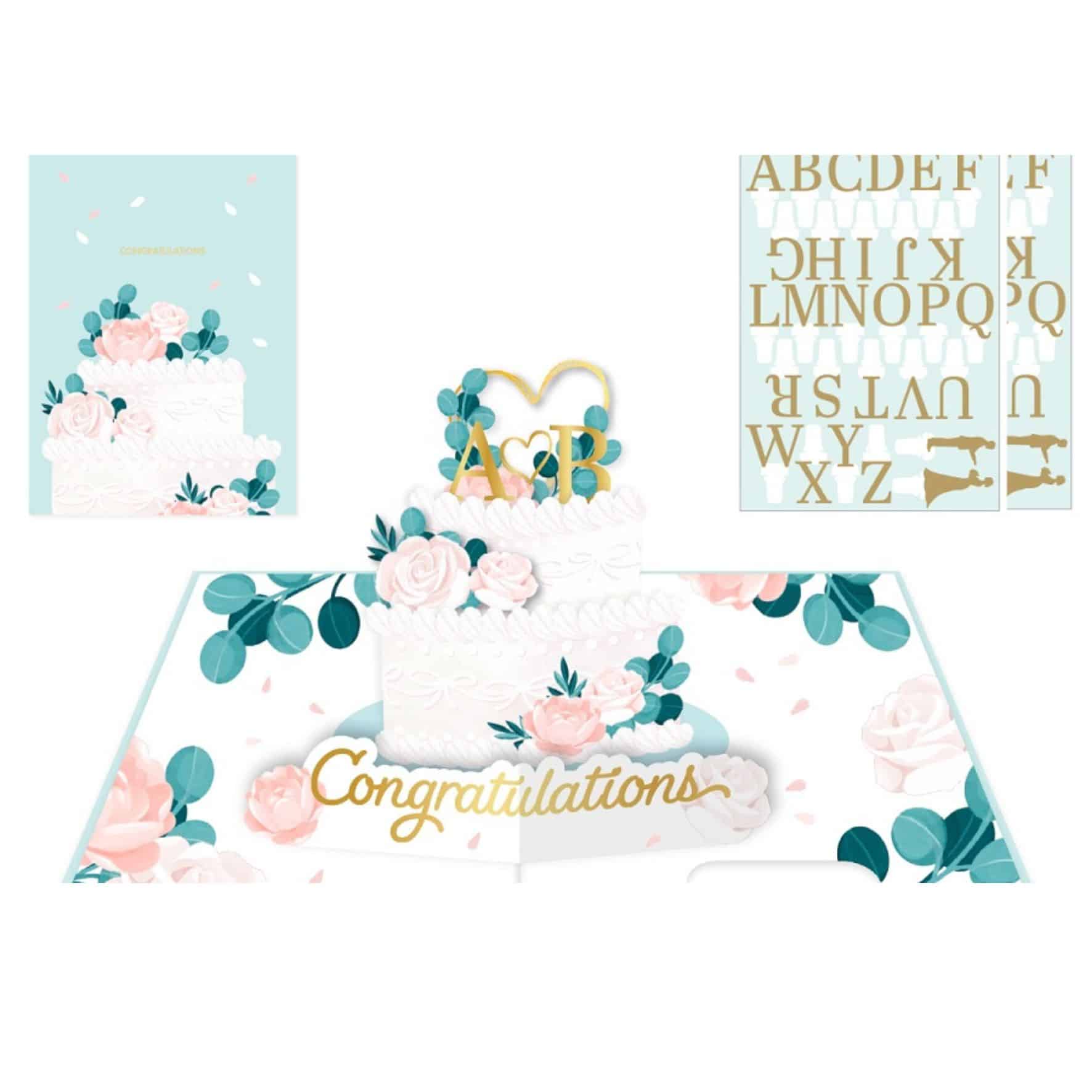 Pop-up-Karte mit Buchstabentafel zum Individualisieren, Kartenmaß 14×19 cm. FSC zertifiziertes Papier. Plastikfrei verpackt. Karte zertifiziert von der World Fair Trade Organisation (WFTO).